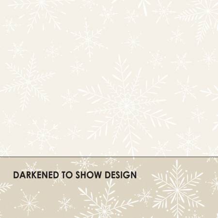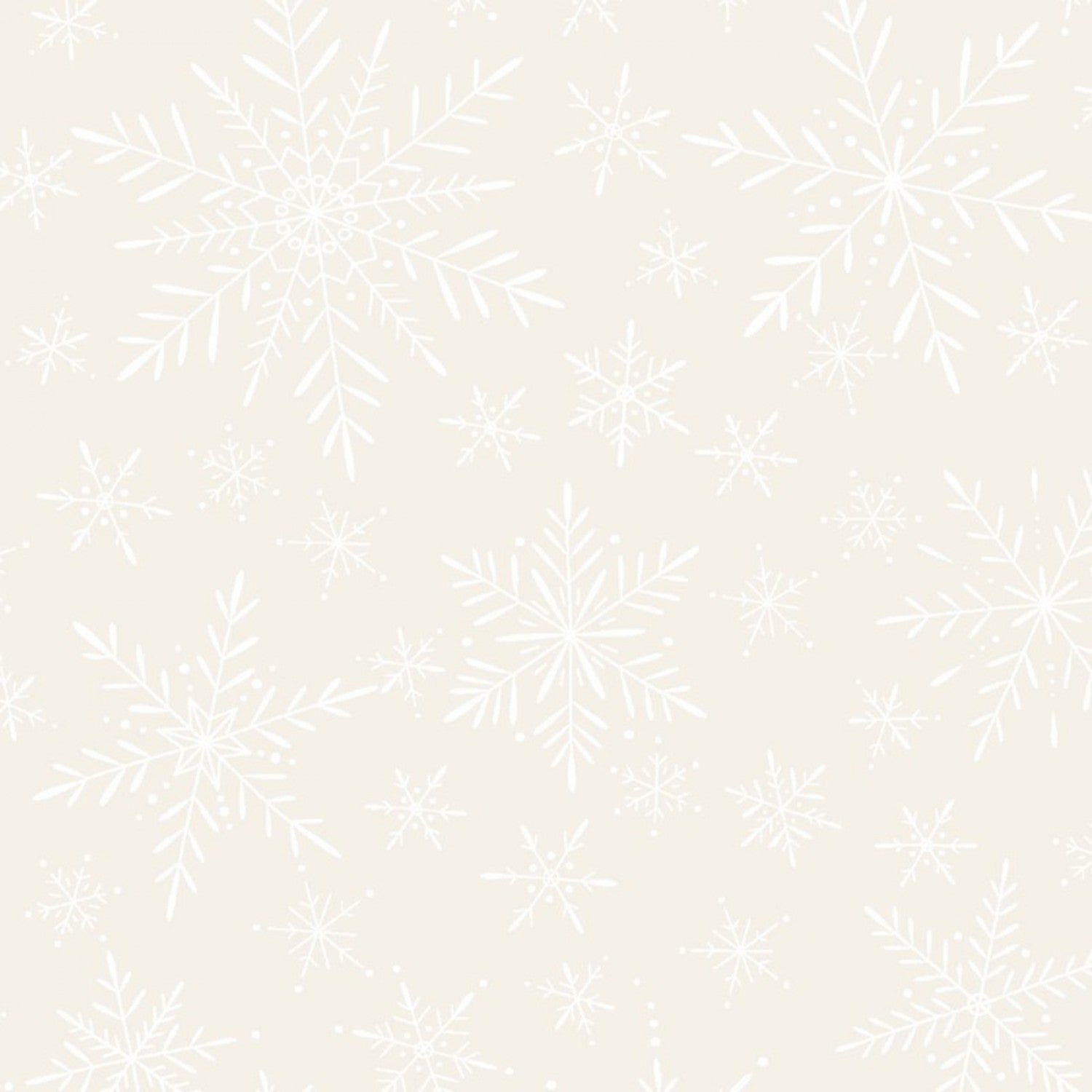 This fabric features a delicate and elegant design with snowflakes scattered across a soft white background, creating a winter wonderland effect. The snowflakes vary in size, adding depth and a whimsical touch to the fabric, making it perfect for festive or winter-themed projects.