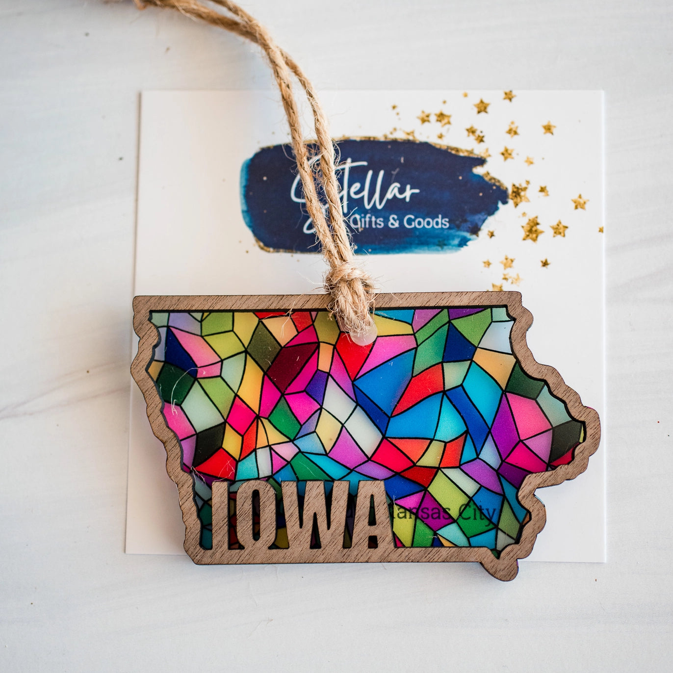 Gifts Handcrafted "Stained Glass" State Holiday Ornament - Iowa