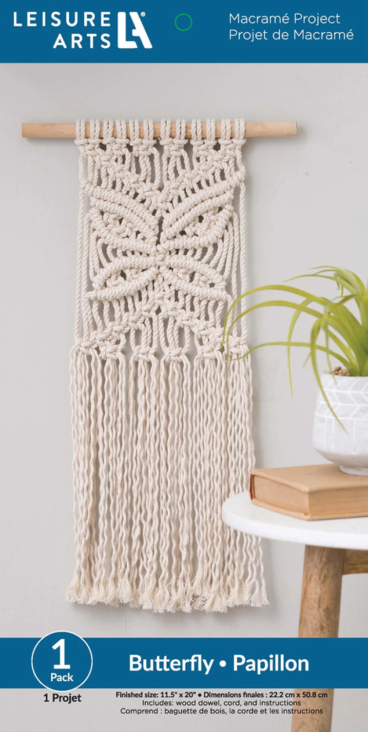 Leisure Arts Kit Macrame Butterfly- Macrame kit contains: 11.5" wood dowel, cord, and instructions. Design is a butterfly weaving with loose ends