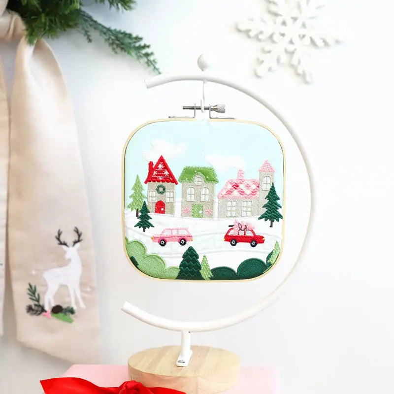 Frame your sewing, quilting, and embroidery projects in Kimberbell’s Bamboo Square Hoop! This exclusive 6” wooden hoop features gold hardware and a lip to keep your project taut. Designed especially for the Joyride design from Kimberbell’s Comfort & Joy event, this darling hoop is also perfect for a variety of craft projects!