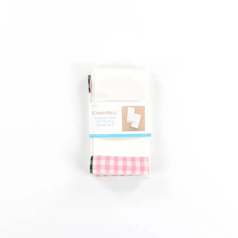 Notions Kimberbell Gingham Trim Tea Towels Pink & Green KDKB277