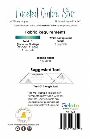 Do you want a nice large star for the star in your life? This Faceted Star is made with just one Gelato fabric by Maywood Studio. Let the fabric do all the hard work to make this star look amazing. Finished size 66" x 66". Suggested Tools: The 90 Triangle Tool(NHS517).