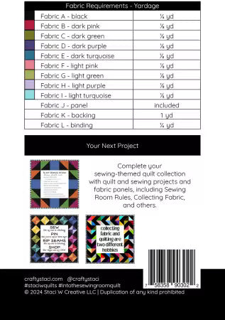 The finished quilt measures 20" x 20”, so it's the perfect size to display in any sewing room. Add your choice of prints or solids to make it your own!