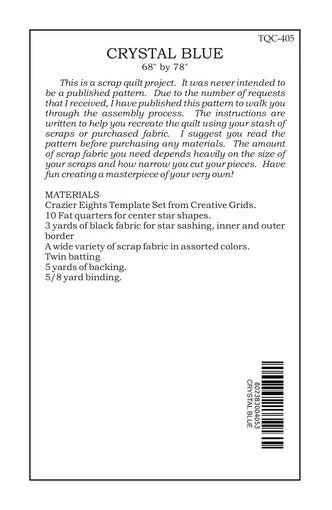Crystal Blue is a beautiful 68" by 78" quilt designed by Karen Montgomery. Fat quarter and scrap friendly, this project is the perfect way to get creative and showcase your favorite fabrics.