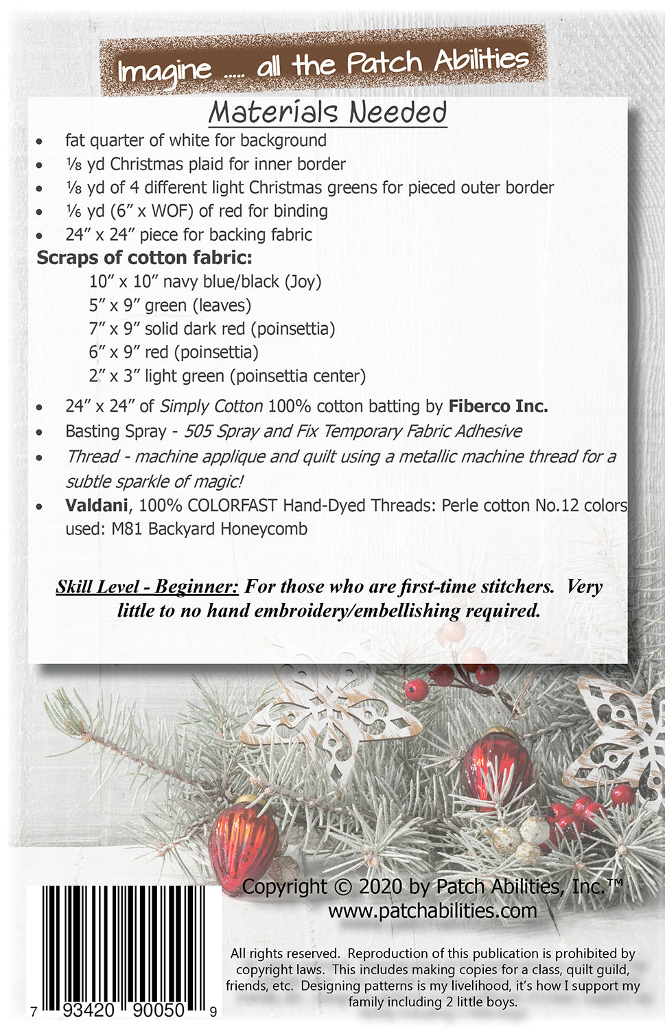 The applique stitching IS your machine quilting. Makes a perfect dining table decor as its blank center leaves space for your napkins, candle or flowers, with poinsettias and word Joy on opposite sides. This pattern stitches up fast with great pattern directions, even images, that anyone can follow. Pattern includes the best beginner tips and complete 45 degree angle binding instructions, because I too was once a beginner. Create dining table decor you'll love.