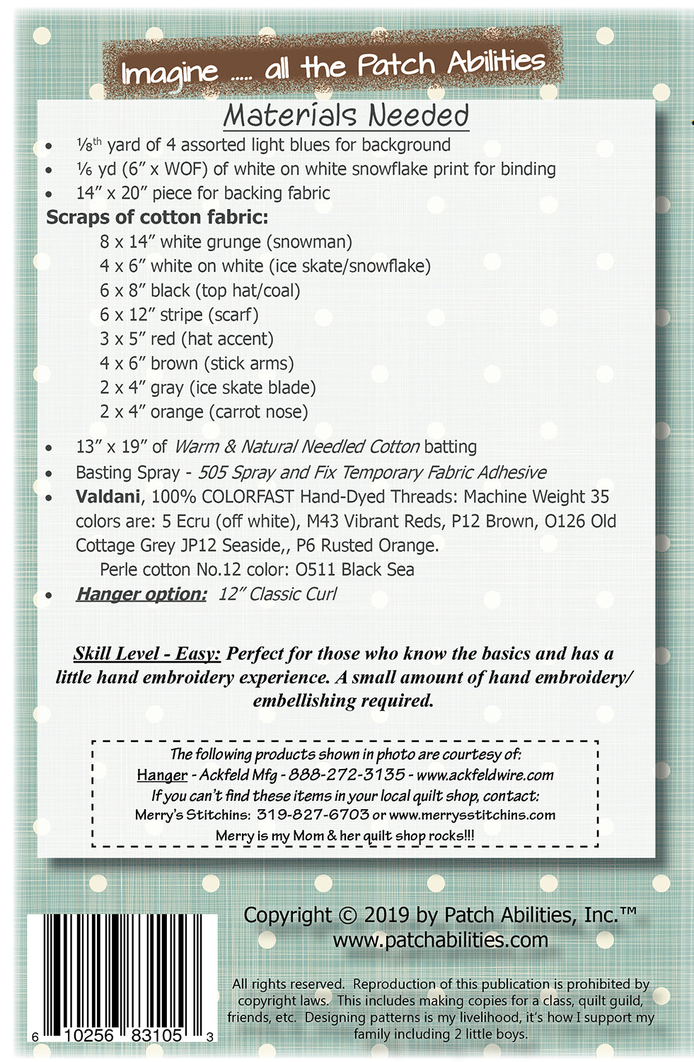 Pattern Patch-Abilities - Mr. Frosty - DIGITAL DOWNLOAD P232