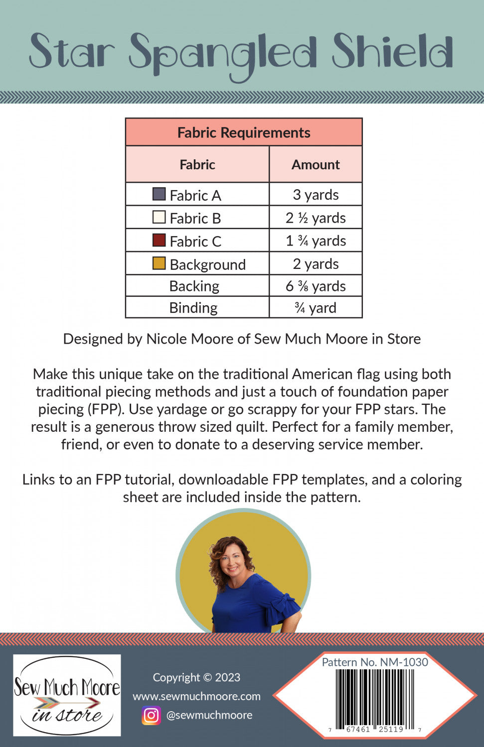 The Star Spangled Shield quilt pattern is a unique take on the traditional patriotic motif using both traditional piecing methods and just a touch of foundation paper piecing (FPP). Use yardage or go scrappy for your FPP stars. The result is a generous throw sized quilt. Perfect for a family member or friend, or even to donate to a deserving service member. Quilt Finishes at 68" x 91" A single copy of the FPP Templates are included and should be reproduced at the actual size to ensure correct sizing.