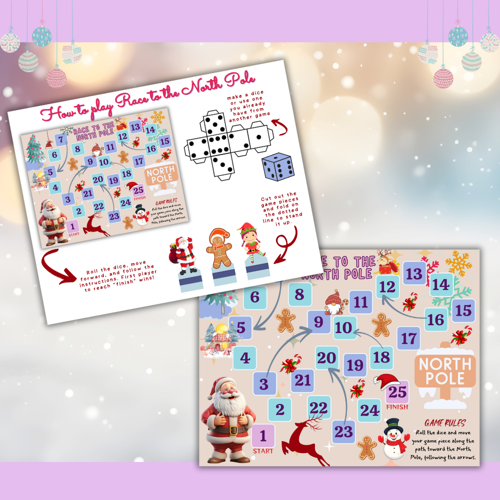 - 9 Printable Pages Christmas Board Game Bundle (3 games)