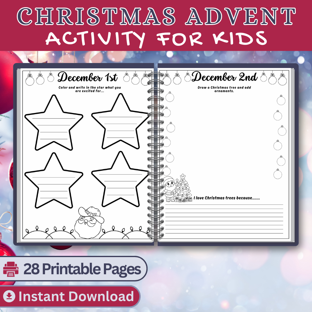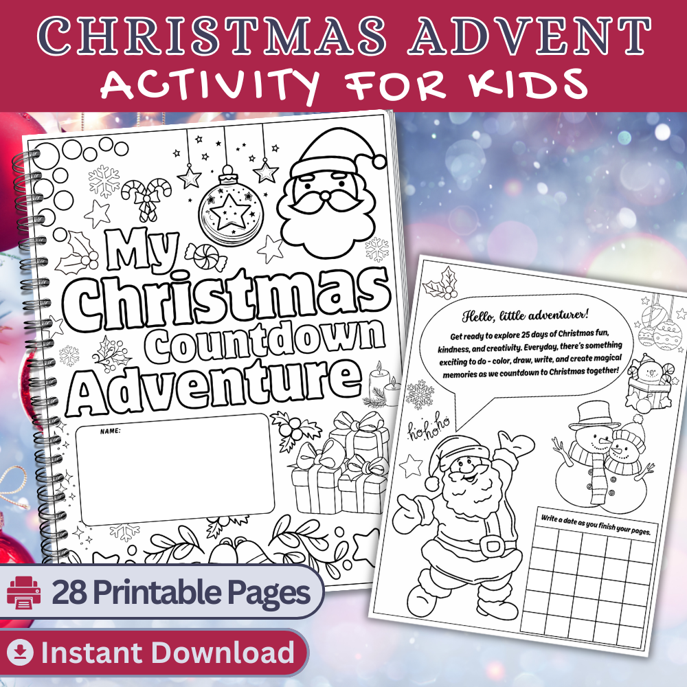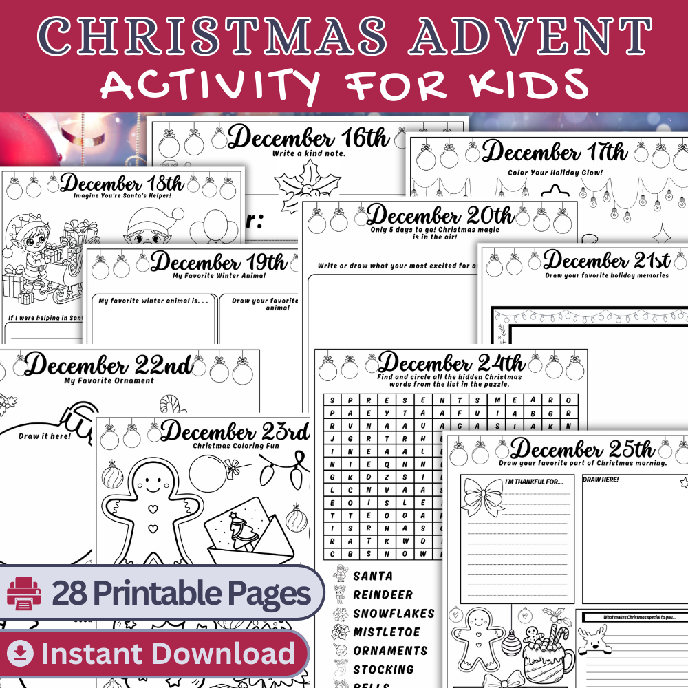 Printable Kids Christmas Advent Activity Bundle 28 pages - INSTANT DOWNLOAD